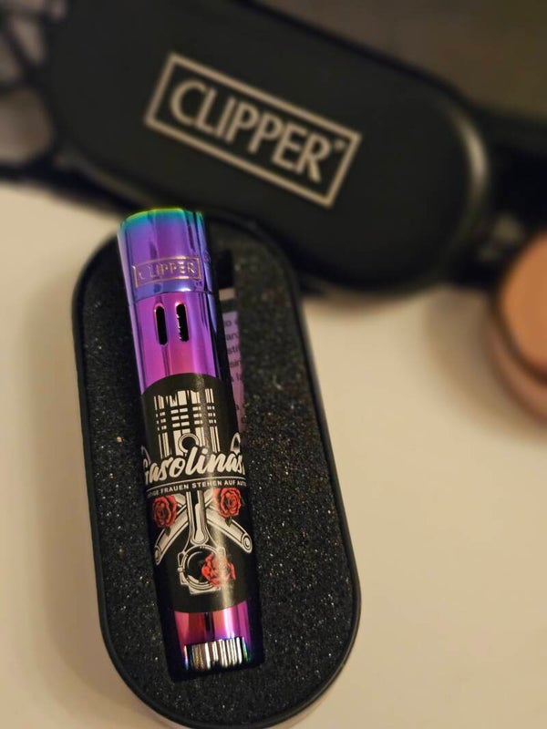 Hochwertiges original Clipper aus Metal mit JET Flame (Sturmfeuer) dies wird mit einer Metalbox von Clipper geliefert.