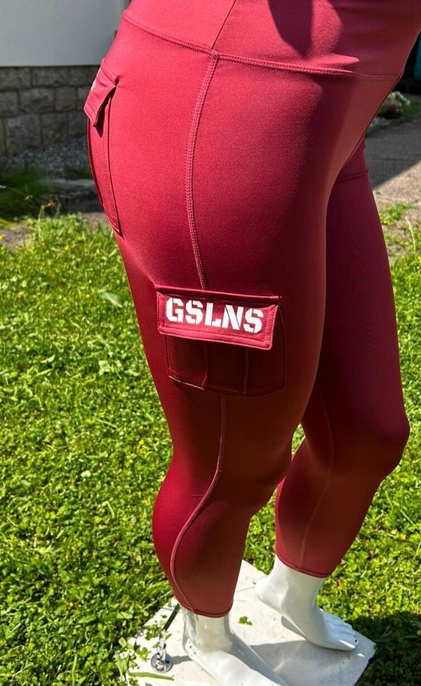 Unsere verbesserte Cargoleggins mit Taschen gibt es aktuell in 2 Farben. Olive & Rot