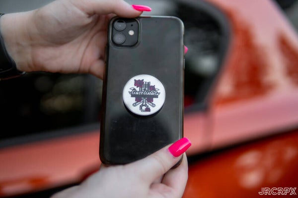 Die Halterung wird mit doppelseitigen Kleber aufs Handy oder die Handyhülle angebracht.