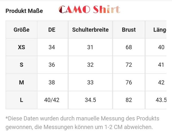 Bauchfrei mit schwarzen Nähten. Bei Größe M sind die Nähte Camouflage!