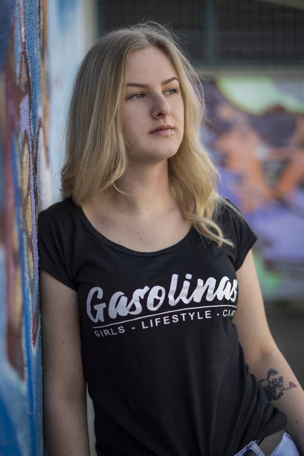 Neues, modisches Gasolinas Tshirt mit freiem Rücken und Rundhals.